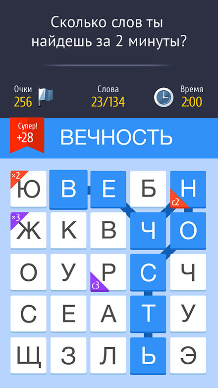 Fight with your friends – find as many words on the screen as you can in two minutes and become a Word Lord.